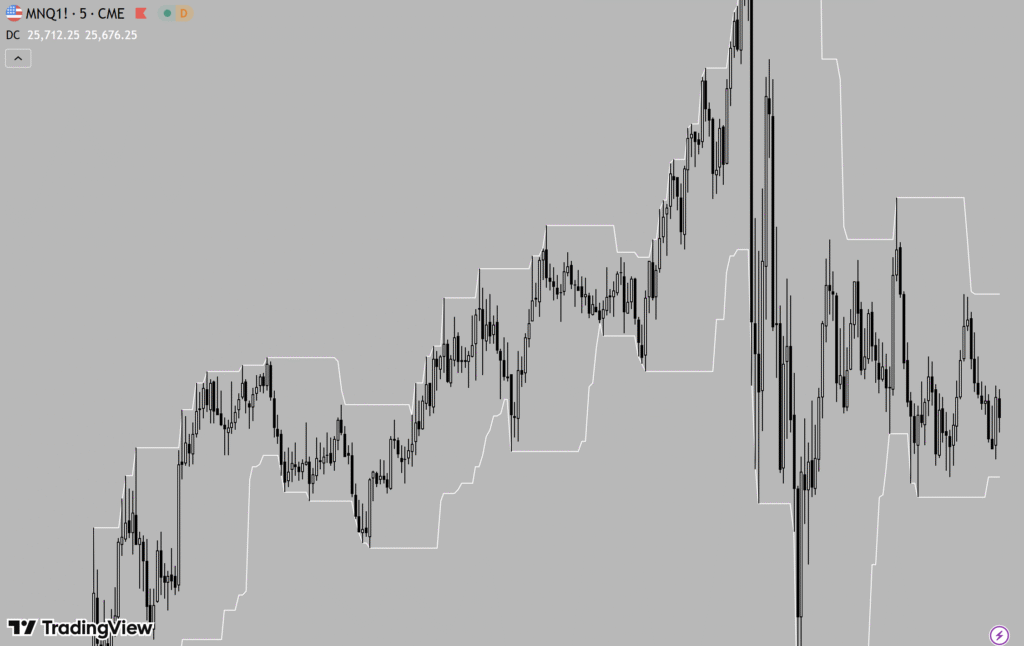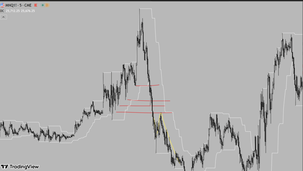 Market structure is built from a sequence of swing highs and swing lows. The best indicator for identifying swing lows and highs for new traders: Donchian Channels