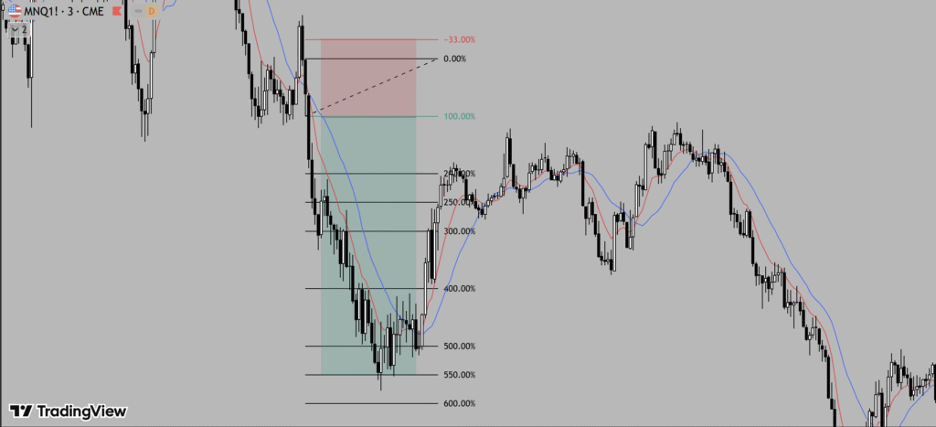 - Apply my Fibonacci method — enter at 100%, stop at -33%, monitor higher levels for profit.